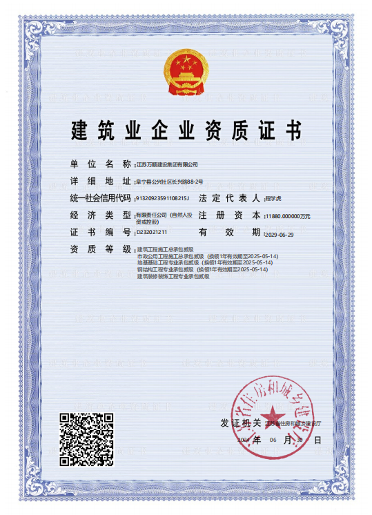 • 萬(wàn)順集團(tuán)晉升為江蘇省二級(jí)資質(zhì)建筑單位2015-02-28